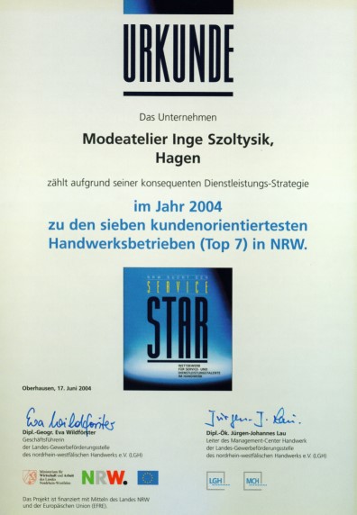 1982 3. Platz beim Wettbewerb “Junges Handwerk NRW”, FB Textil 1994 2 Goldmedaillen beim Bundeskongreß der Maßschneider 1996 2 Goldmedaillen beim Bundeskongreß der Maßschneider 1998 2 Silbermedaillen beim Bundeskongreß der Maßschneider 1999 Marketingpreis des Deutschen Handwerks (Verleihung / 1. Platz) 2000 2 Silbermedaillen beim Bundeskongreß der Maßschneider 2004 Servicestar im Handwerk 2006 Ehrenurkunde der Handwerkskammer Dortmund für 25 Jahre erfolgreiche handwerkliche Tätigkeit und Ausbildung 2008 2 x Goldmedaille, 1 x Silbermedaille beim Bundeskongreß der Maßschneider 2010 3 Silbermedaillen Bundeskongress 2010 Unternehmenspreis 2010 NRW 2012 2 x Goldmedaille, 1 x Silbermedaille, 1 x Bronzemadaille Bundeskongress der Maßschneider in Bad Wörishofen 2014 - 1 x Bronzemedaille beim Bundeskongreß der Maßschneider in Dortmund